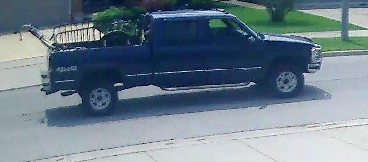 The suspect was reportedly able to escape in an “older-looking dark blue pickup truck with tools inside the truck bed.”