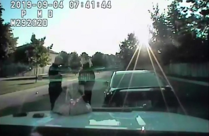 Officers released an edited dashcam video captured in the cruiser. An officer can be seen in the video questioning the man, who initially declined to give a statement. The tape appears to cut a few minutes ahead and the man was asked how the woman got into the driver’s seat.