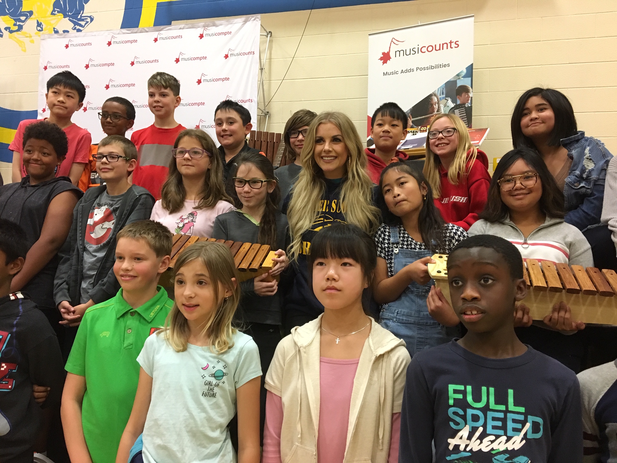 Ell was at K-9 Father Scollen School to help MusiCounts Band Aid program present a $15,000 grant for musical instruments.