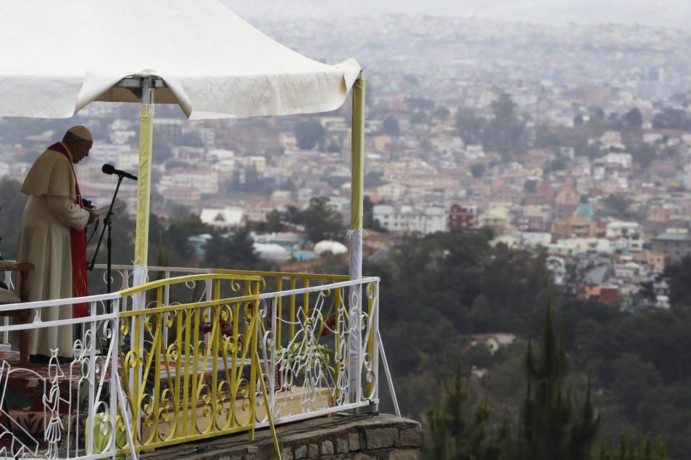 Francis appealed for new development strategies to fight global poverty as he visited the Akamasoa project, or “City of Friendship,” which soars on a hillside above the dump in Antananarivo. The project is the brainchild of an Argentine priest who was so overwhelmed by the abject poverty of Madagascar that he set about creating ways for the poor to earn a living.