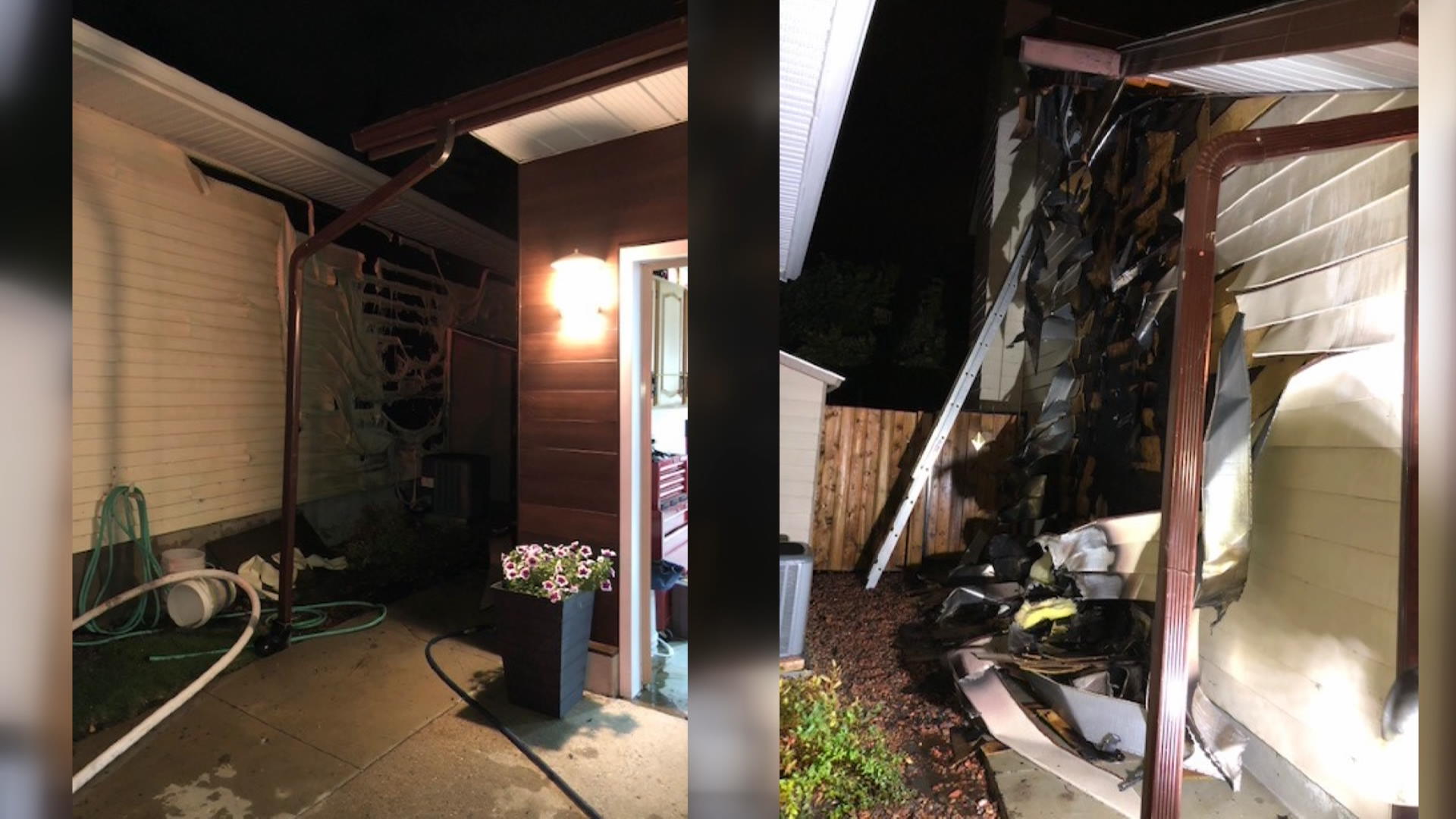 A neighbour used a garden hose prior to firefighters arriving to prevent the fire from spreading, fire department officials said.