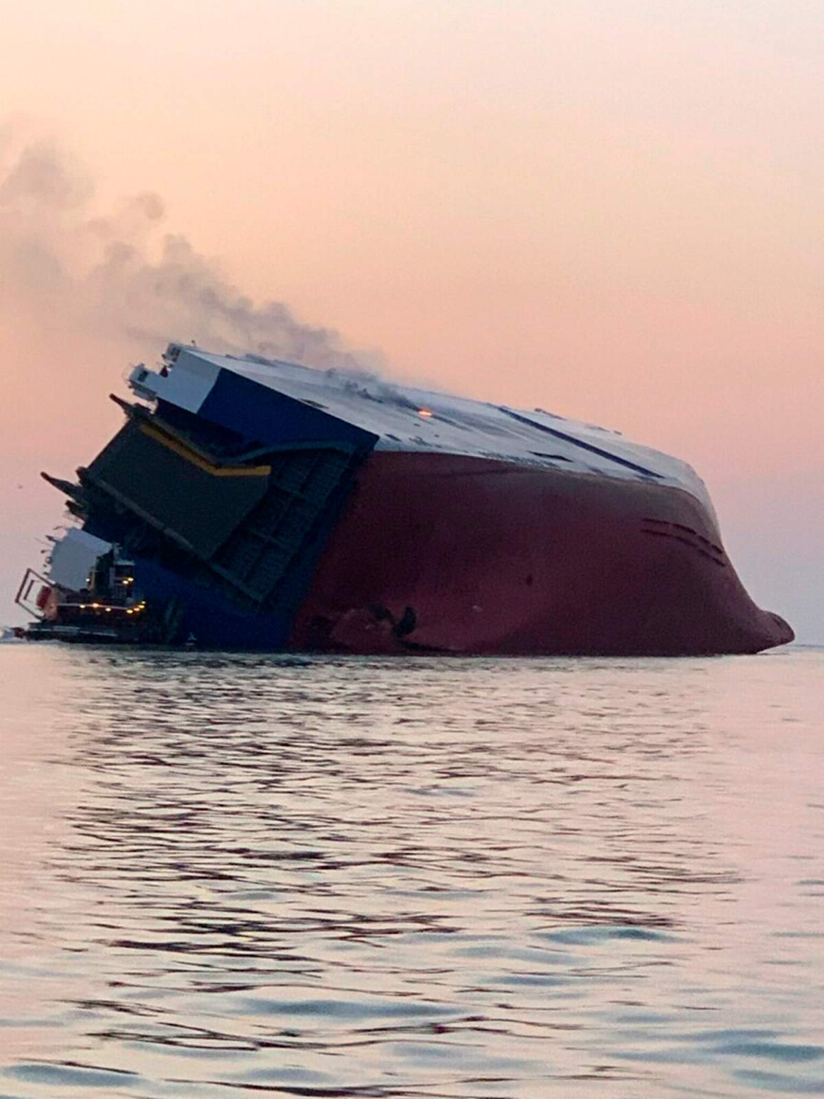 In the hours immediately after the accident, the Coast Guard lifted 20 crew members into helicopters before determining that smoke and flames and unstable cargo made it too risky to venture further inside the vessel. Officials were also concerned about the stability of the ship, which was carrying 4,000 vehicles, some of which may have broken loose.