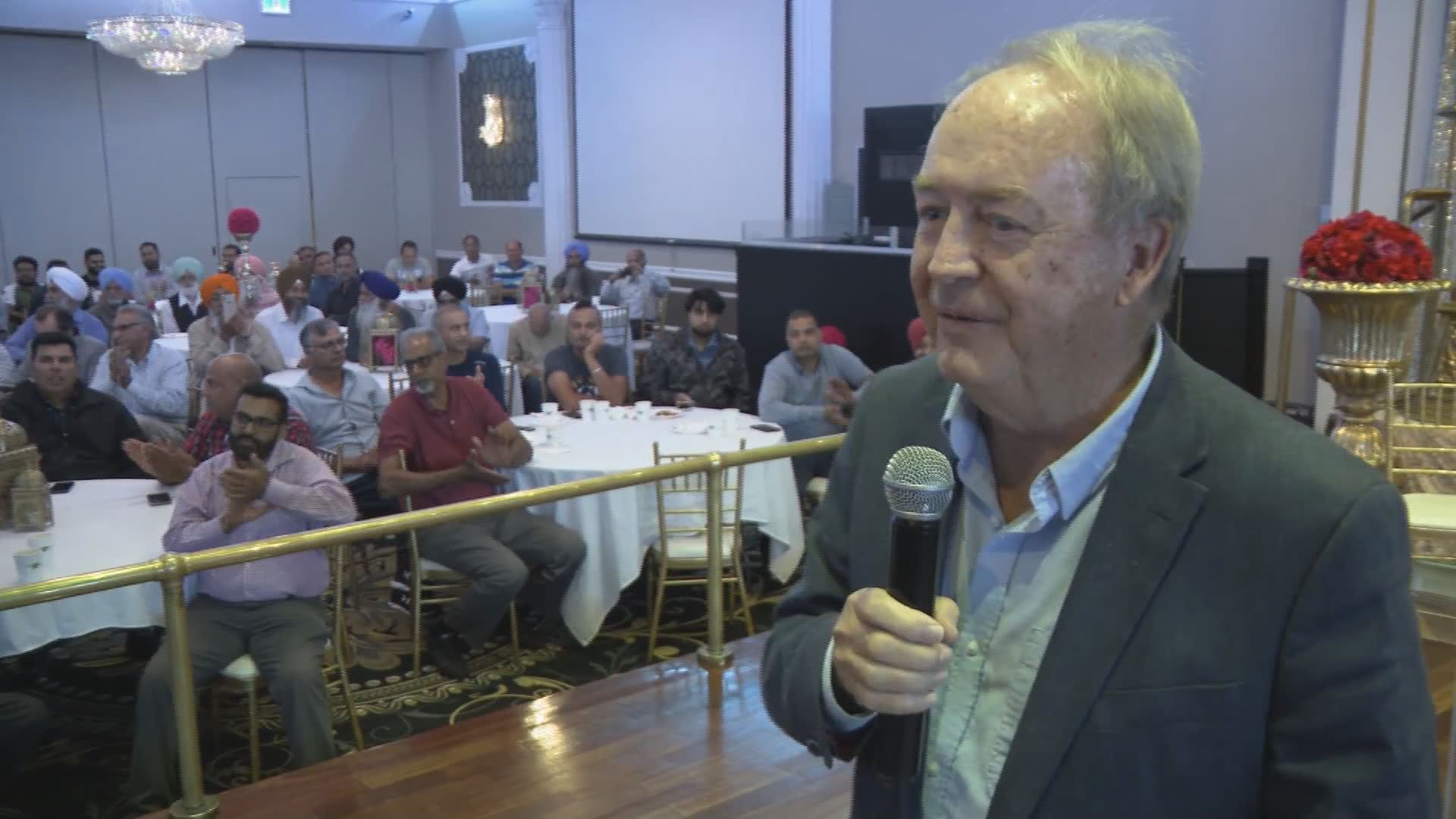 Mayor Doug McCallum was met with cheers as he took the stage to speak at a meeting of B.C. taxi drivers who had gathered to vent frustrations at what they say is not a level playing field.