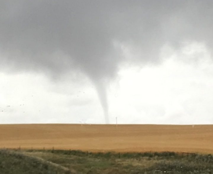 A tornado touched down west of Drumheller, Alta., on Tuesday, according to Environment Canada.
