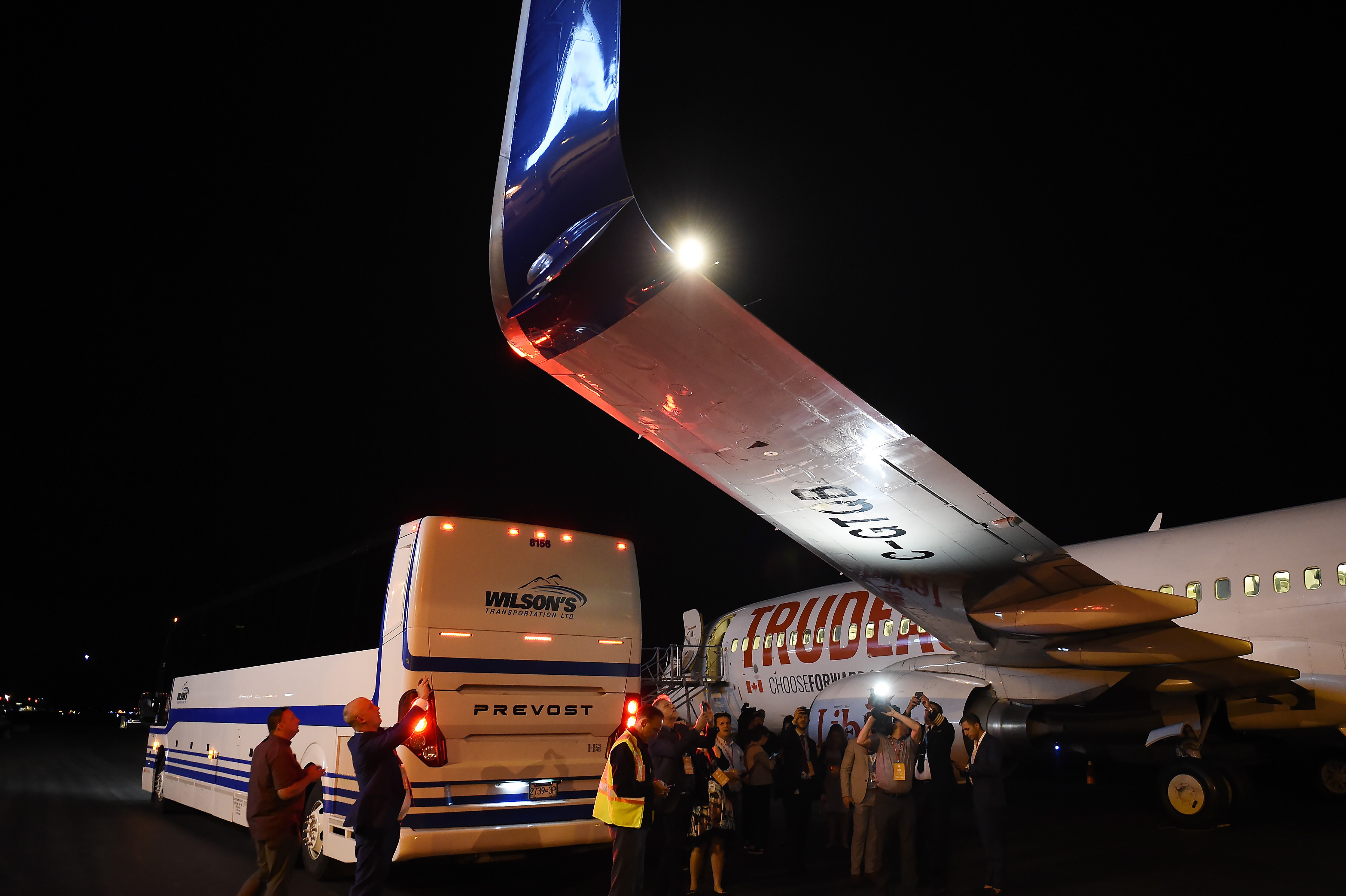 Global News’ Ottawa bureau chief Mercedes Stephenson was on the bus as it went underneath the plane’s wing, slowly scraping the entire length of the bus.