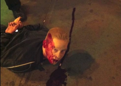 “Before my friend who threw the pizza could react, the cop just grabbed him by the shoulder and turned him around; and my other friend who did absolutely nothing was grabbed by the neck and thrown to the ground. And the cop just started punching him.”