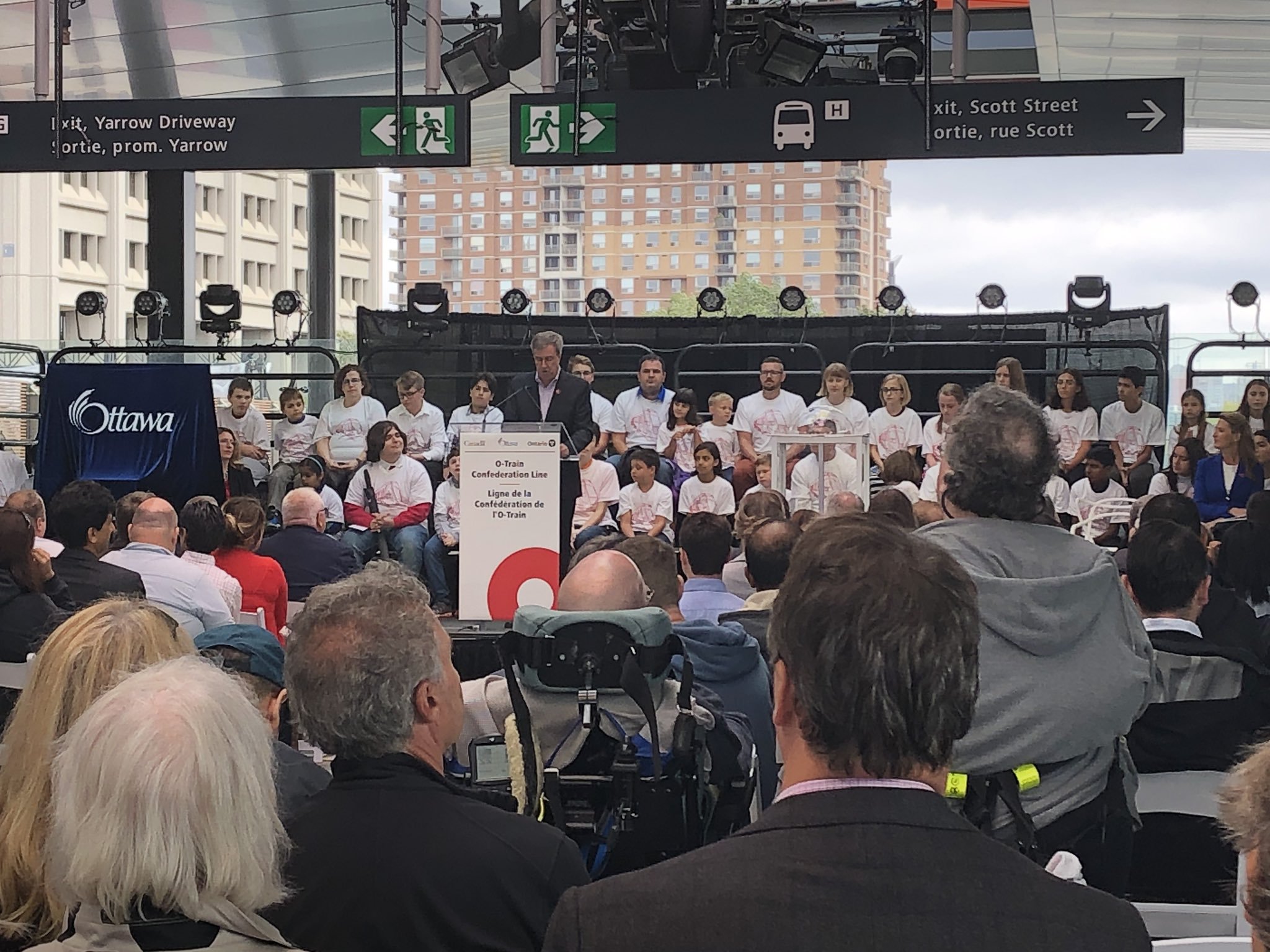 Before the LRT system opened to the public, the City of Ottawa invited about 400 guests — including local, provincial and federal politicians, former councillors, former mayors, stakeholders and other members of the public — to a launch event inside Tunney’s Pasture station on Saturday morning.