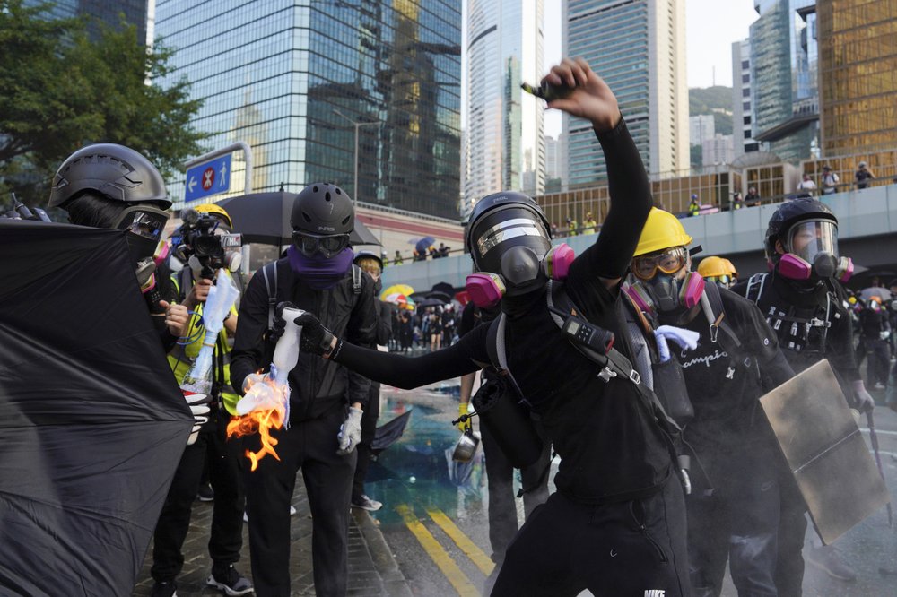 Authorities moved quickly to douse the fires and police fired volleys of tear gas to disperse them, including in the bustling shopping and tourist district of Causeway Bay.