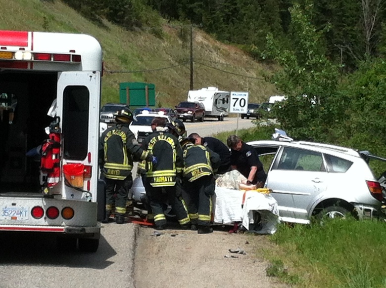 A woman was taken to hospital following a three car crash on Westside Road, about 400m from the Highway 97 interchange in West Kelowna.