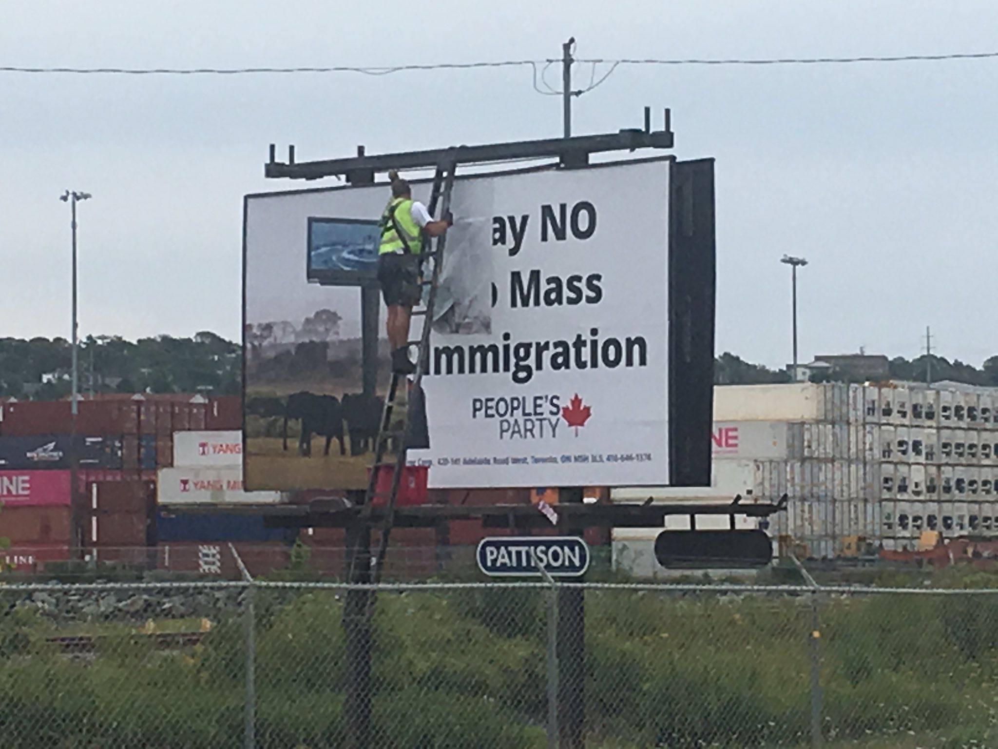 In late August, billboards advertising the position of Maxime Bernier’s People’s Party of Canada on immigration were put up and quickly taken down.