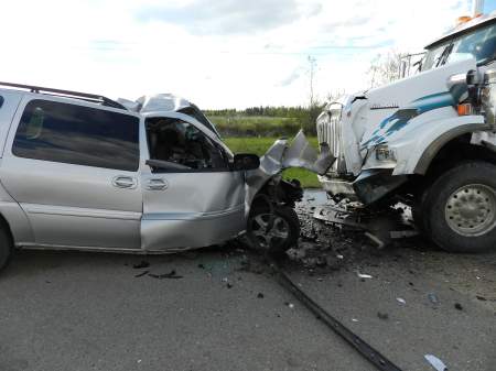 The RCMP say the 43-year-old man was driving a van when it crossed over onto oncoming traffic, crashing into a parked semi-tractor trailer at a roadside rest stop.