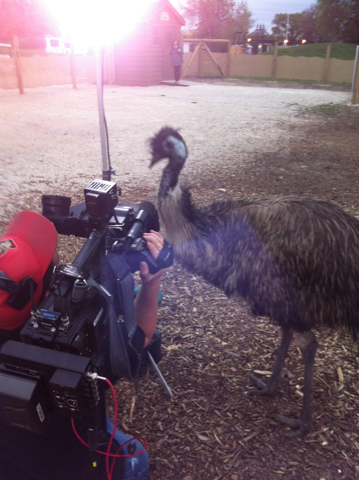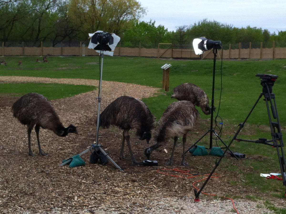 The kangaroos are still fairly timid at this point when it comes to contact with people. Not the emus. They were all over us. They would nibble at the light stand, the camera, my microphone. One got fresh with me, pecking at my rear, but I guess he/she wasn’t feeling it. It left pretty quickly after that.
