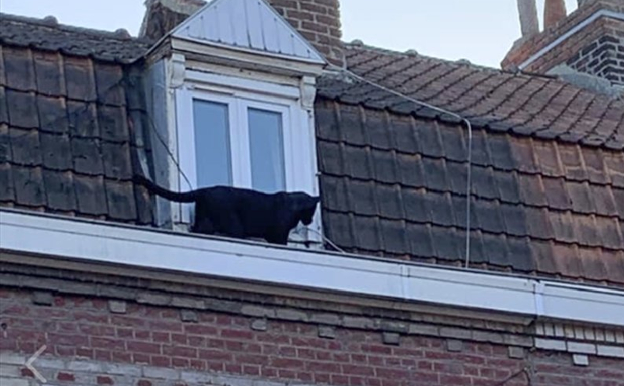 A black panther was spotted getting up to no good on a rooftop in northern France on Wednesday evening.
