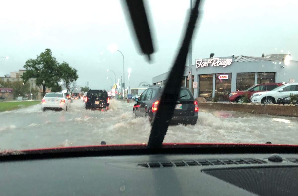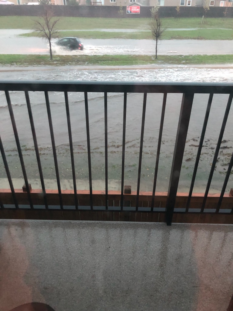 During and after the storm, there were numerous reports of roads flooding, sewer overflows on Route 90, small hail in Lindenwoods and south Winnipeg, and underpasses filling with water.