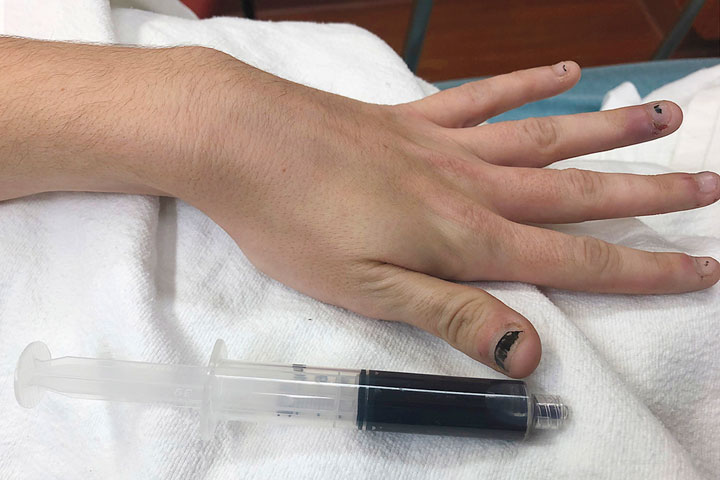 She was treated — maybe ironically — with a medication called methylene blue and her symptoms resolved completely. She was sent home with a referral to go see a dentist.