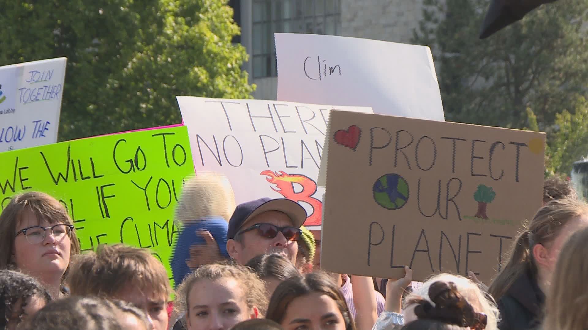 The protesters were inspired, in part, by Swedish teenager and climate activist Greta Thunberg, who has rallied millions around the world to stand up and speak out about climate change.