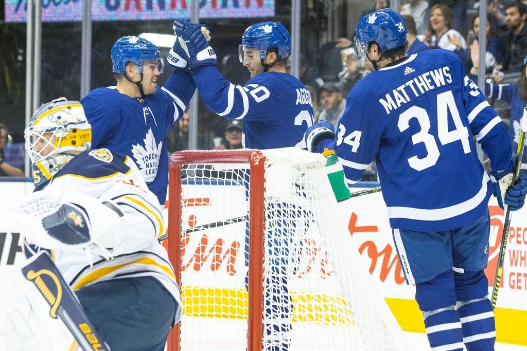Read, who’s also in Toronto on a PTO, made it 3-0 at 9:40 of the final period on a nice toe drag after rookie defenceman Rasmus Sandin poked the puck off a Sabres’ stick in the neutral zone.