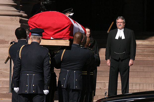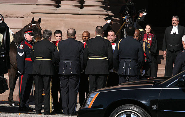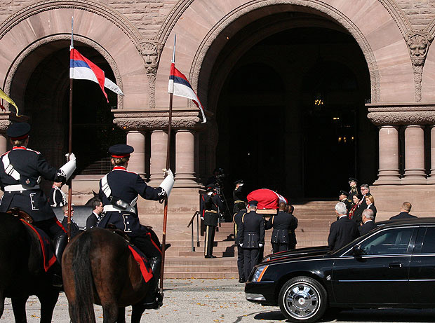 A look at the funeral procession that carried former Ontario lieutenant governor Lincoln Alexander’s body from Hamilton, Ont. to the provincial legislature in Toronto on Sunday Oct. 21, where he will lie in state until Monday night. Alexander died Friday Oct. 19 at the age of 90. A