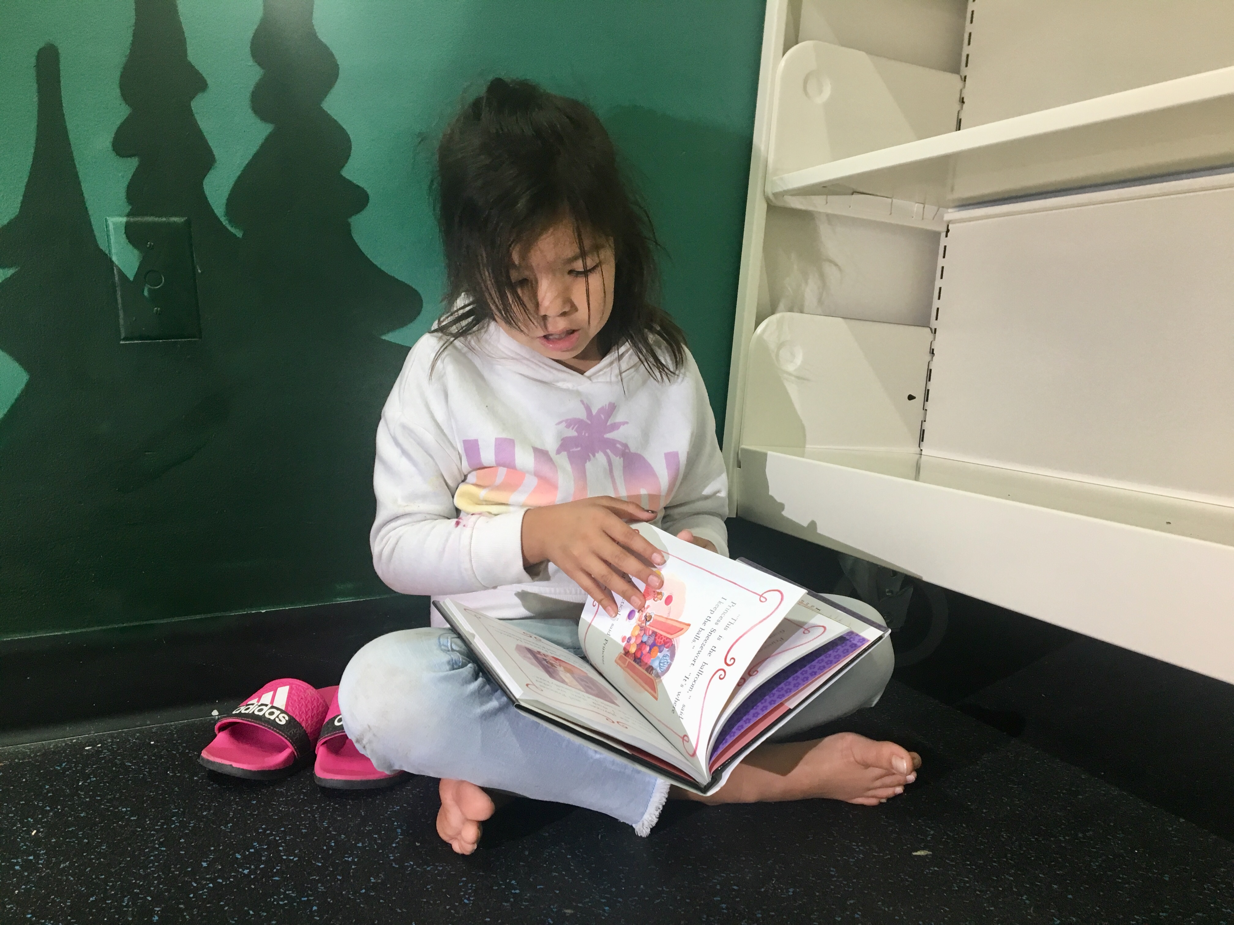 Prior to having this space, Cire would host pop-up libraries once a week in the foyer.