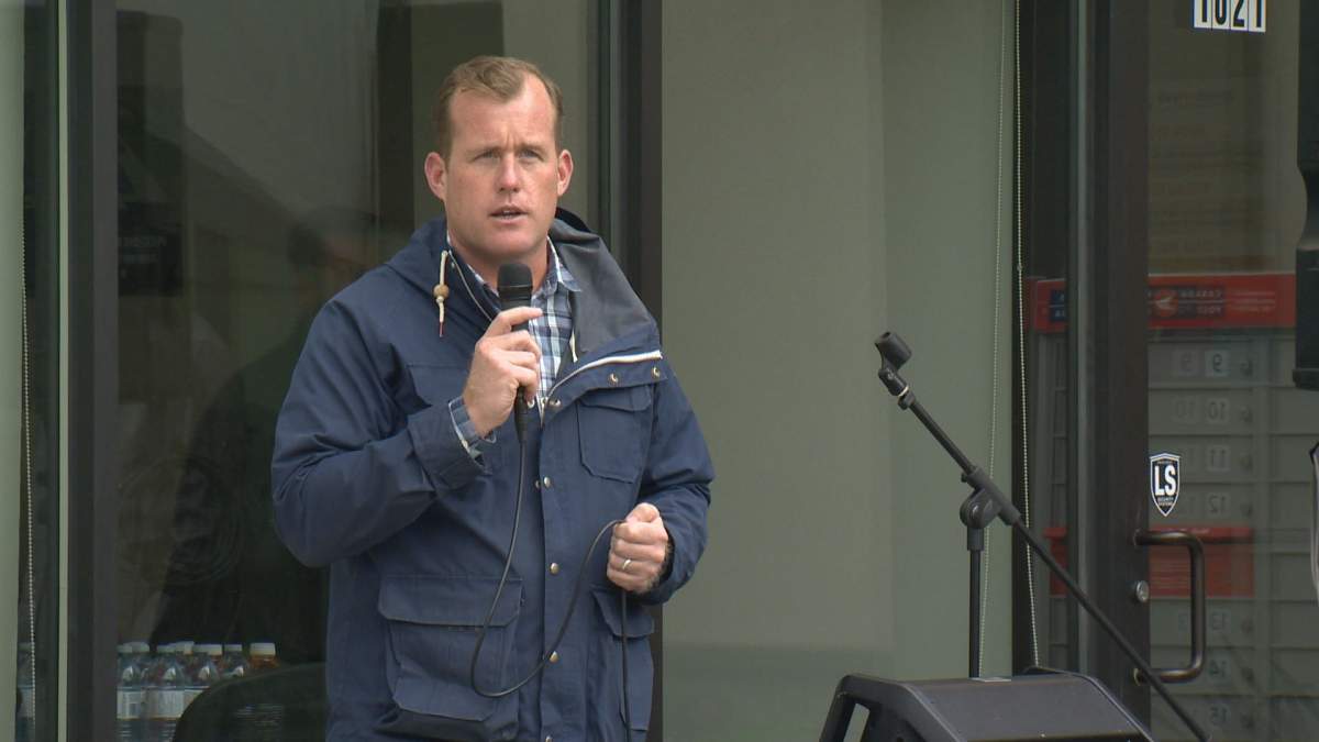 Wascana Solar Co-operative president Josh Campbell attended the rally.