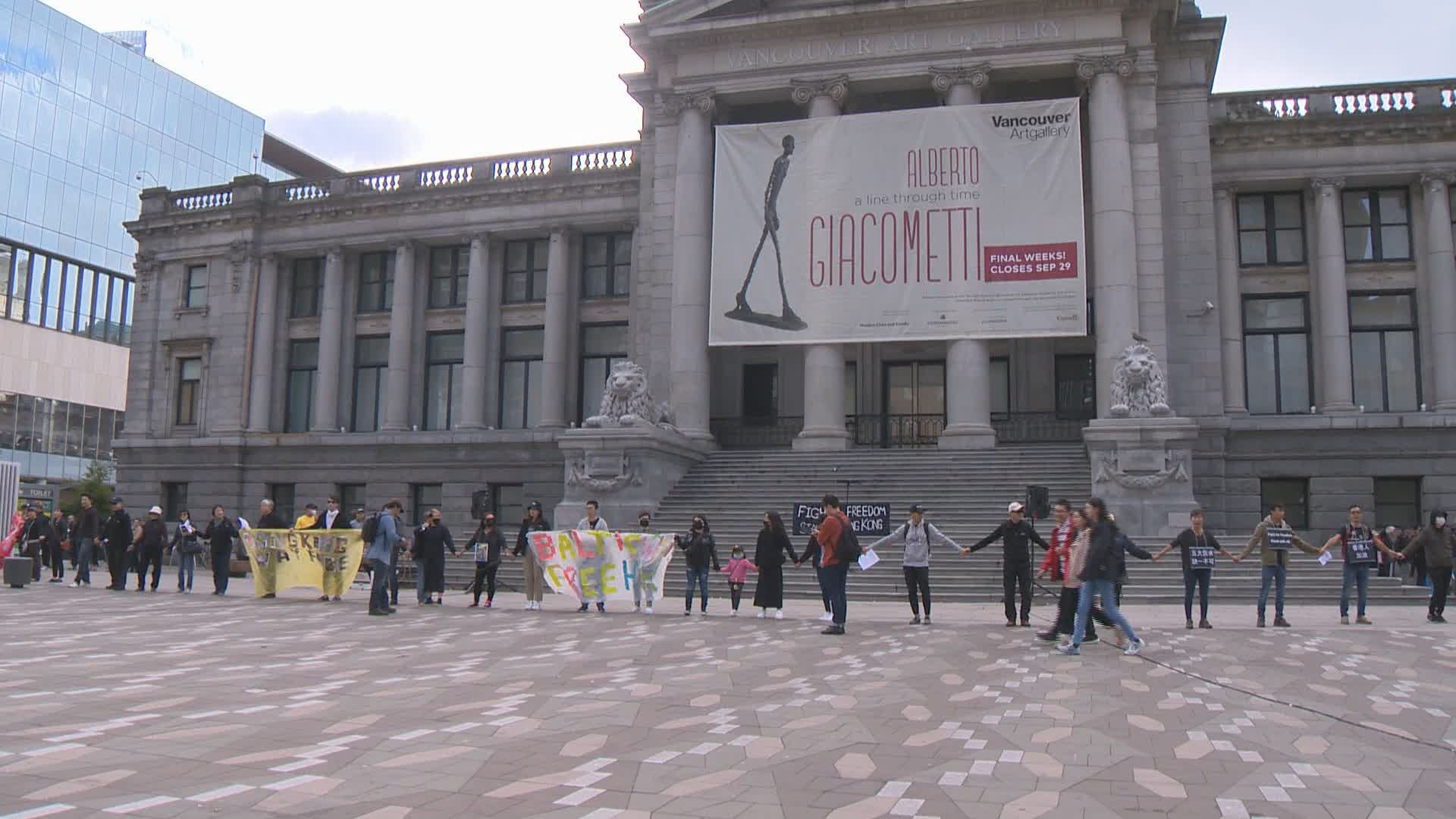 Dozens of supporters formed a human chain around šxʷƛ̓ənəq Xwtl’e7énḵ Square (the official name of the art gallery’s North Plaza).
