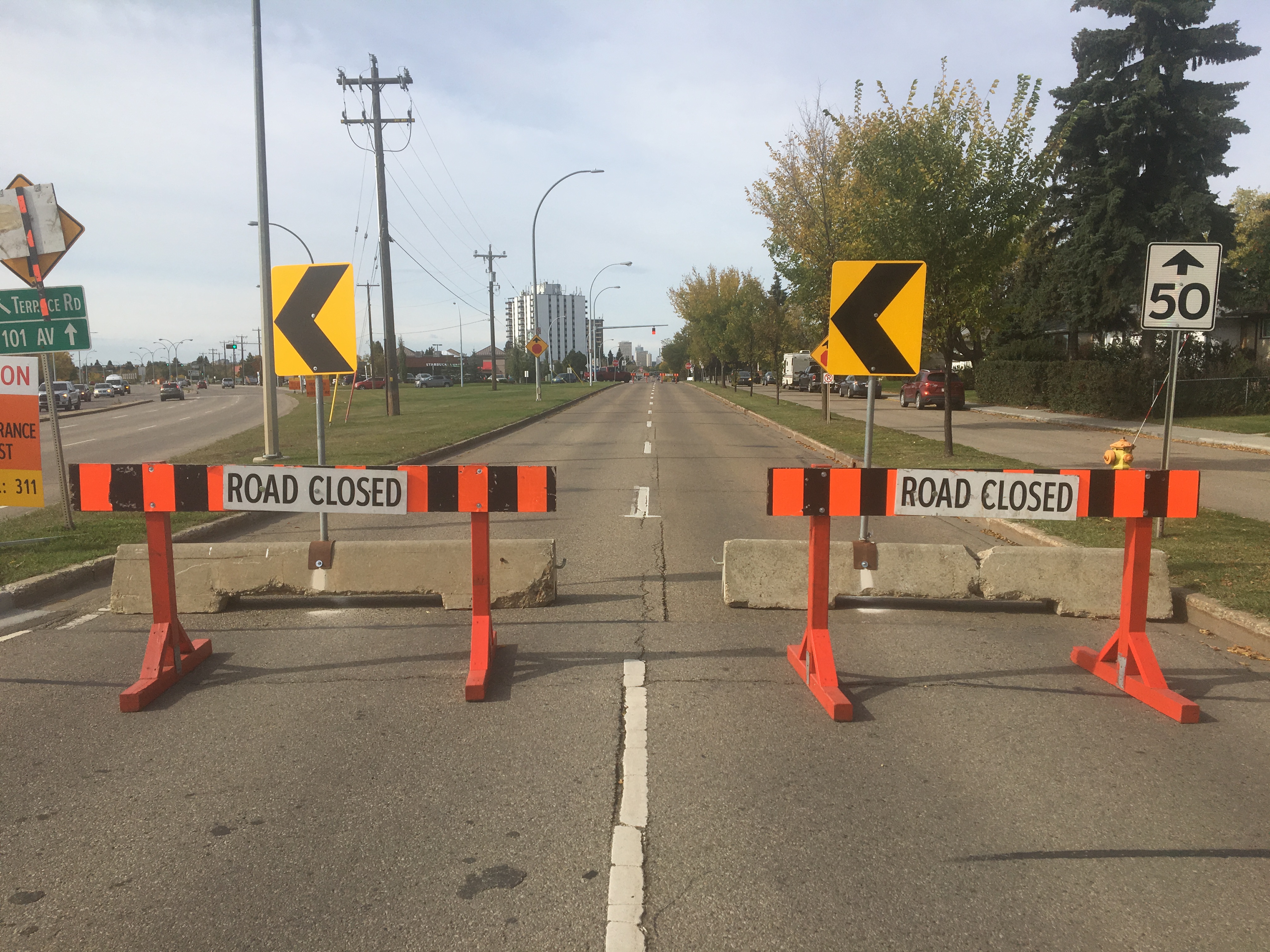 The closure begins Monday Sept. 23, and will continue until Oct. 21. The city said the decision to start the test was in response to concerns shared by the public about large trucks using 101 Avenue instead of Terrace Road.