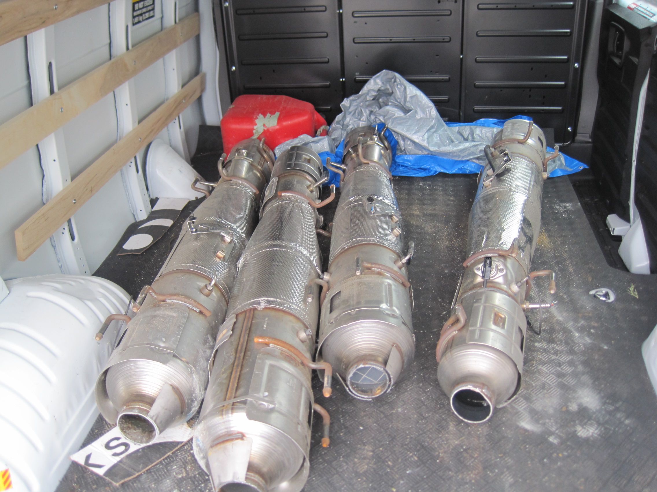 When they inspected the truck, officers found four large catalytic converters, along with power tools, police said. The parts appeared to have been freshly cut out of vehicles, police added.