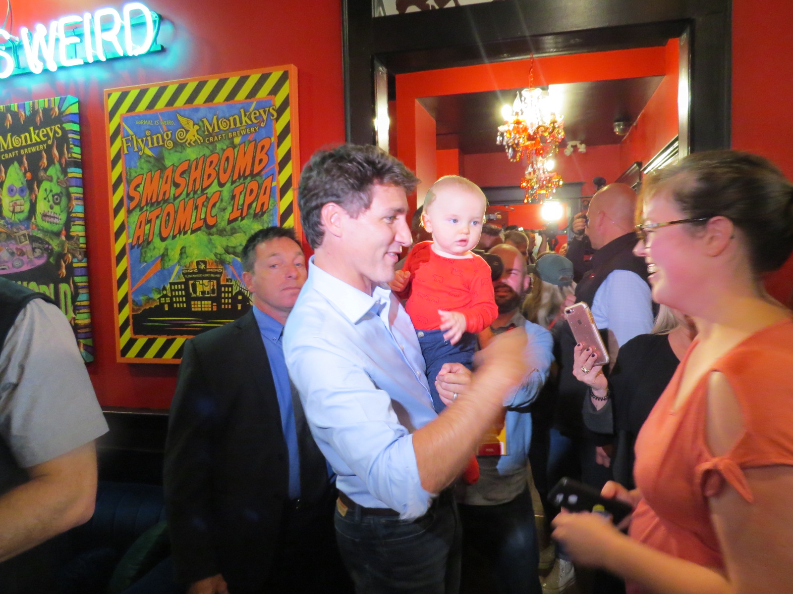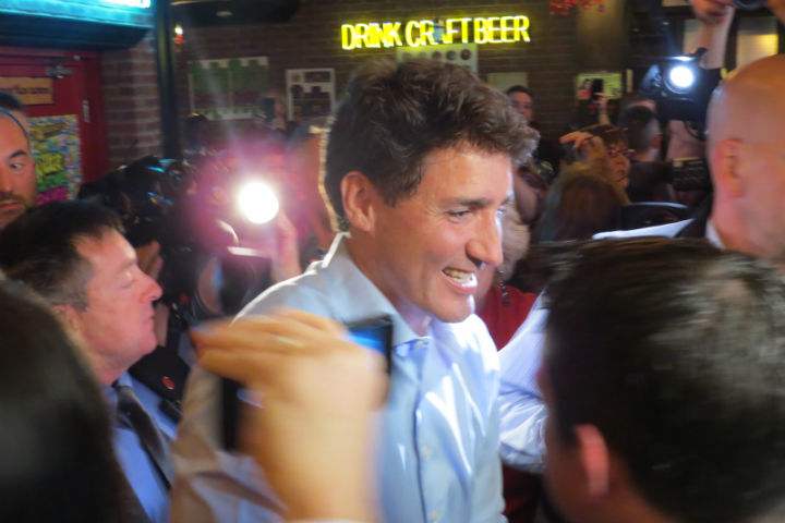 Liberal Leader Justin Trudeau made a campaign stop at the Flying Monkeys Craft Brewery in Barrie on Thursday afternoon.