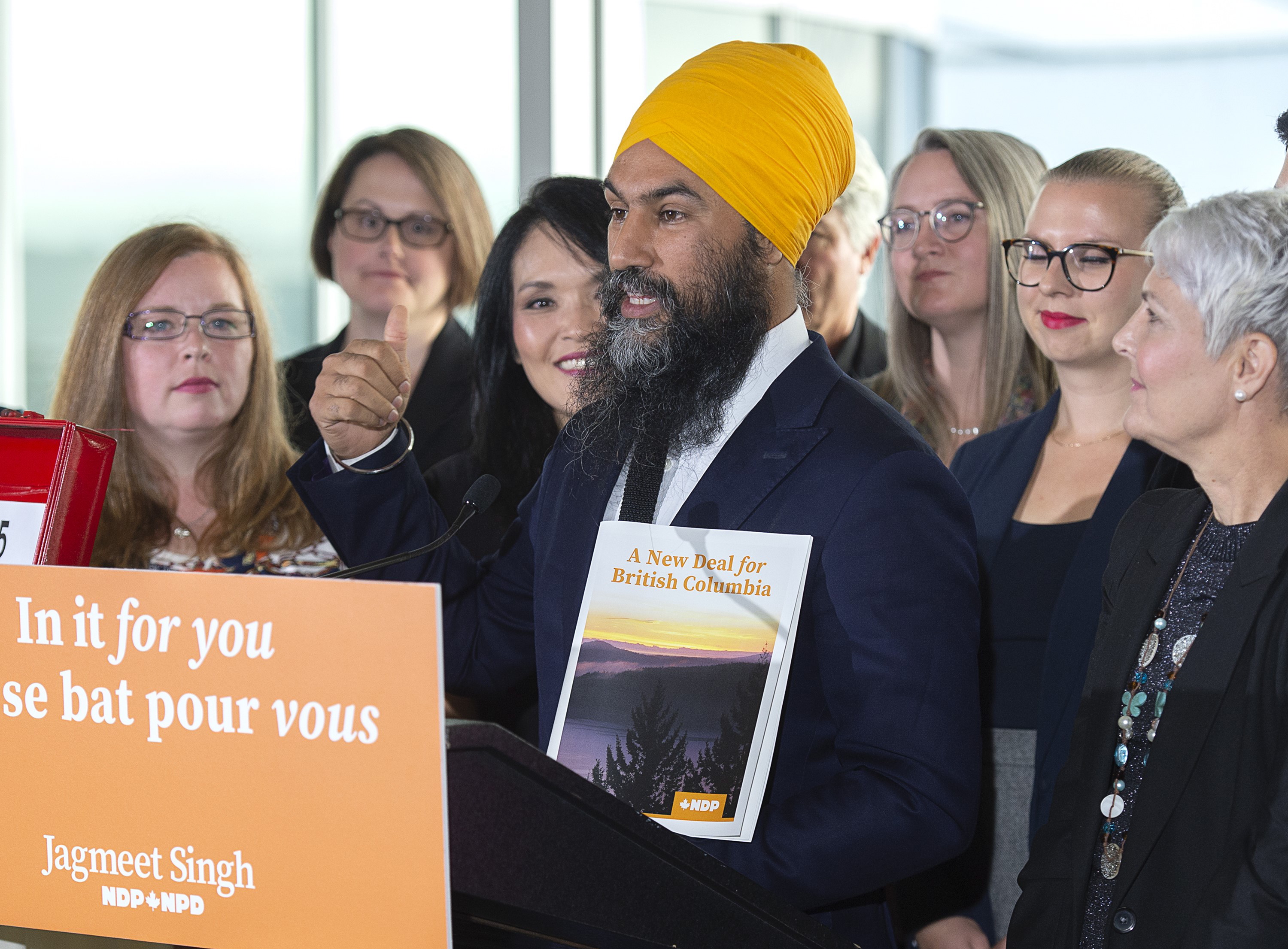 NDP Leader Jagmeet Singh spent a third consecutive day campaigning in the critical battleground of British Columbia — this time on Vancouver Island where his party is trying to prevent a surge by the Greens.