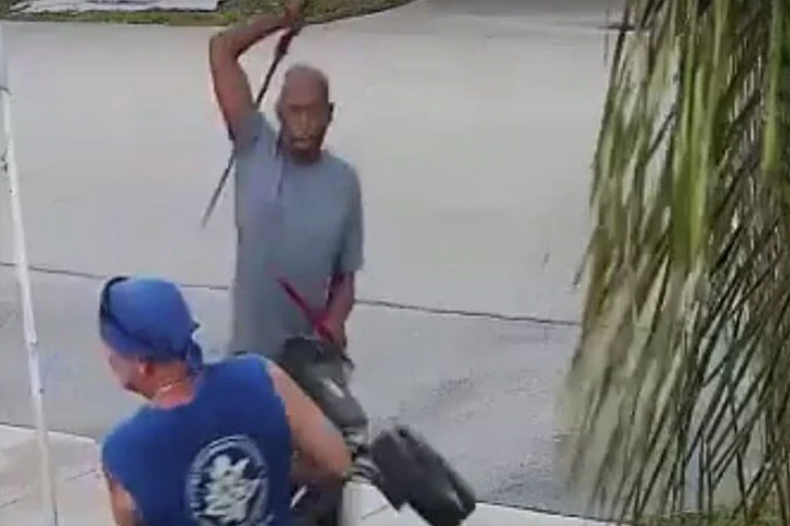 Police say the victim, Todd Beavers, was out jogging when he saw the suspect perusing a bulk trash pile in the neighbourhood of Oakland Park. Beavers claimed a wheelbarrow from the pile that the suspect also wanted, and the two men started arguing.