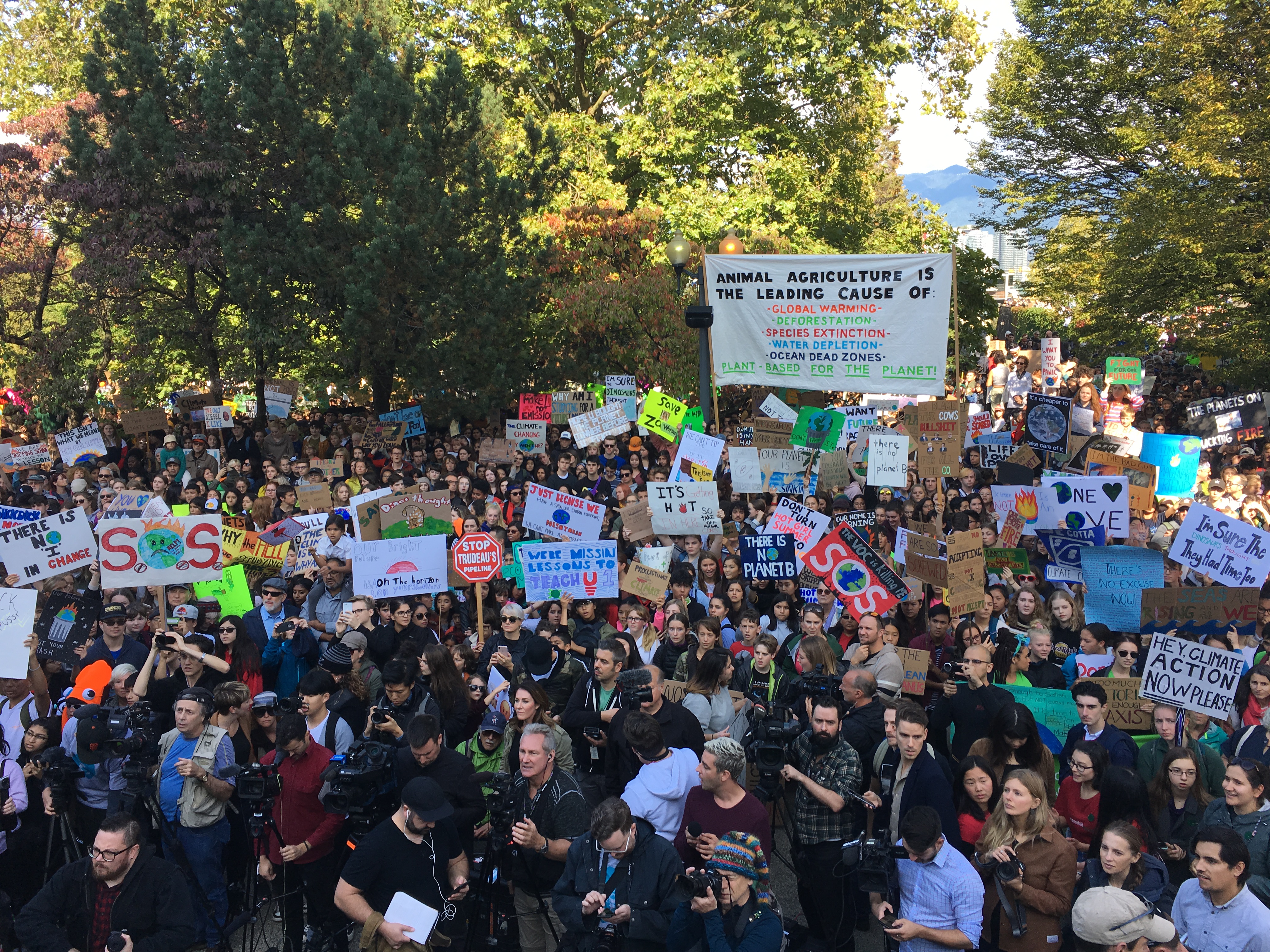 Thousands of people gathered outside Vancouver City Hall on Friday to participate in one of dozens of climate strikes across the country.