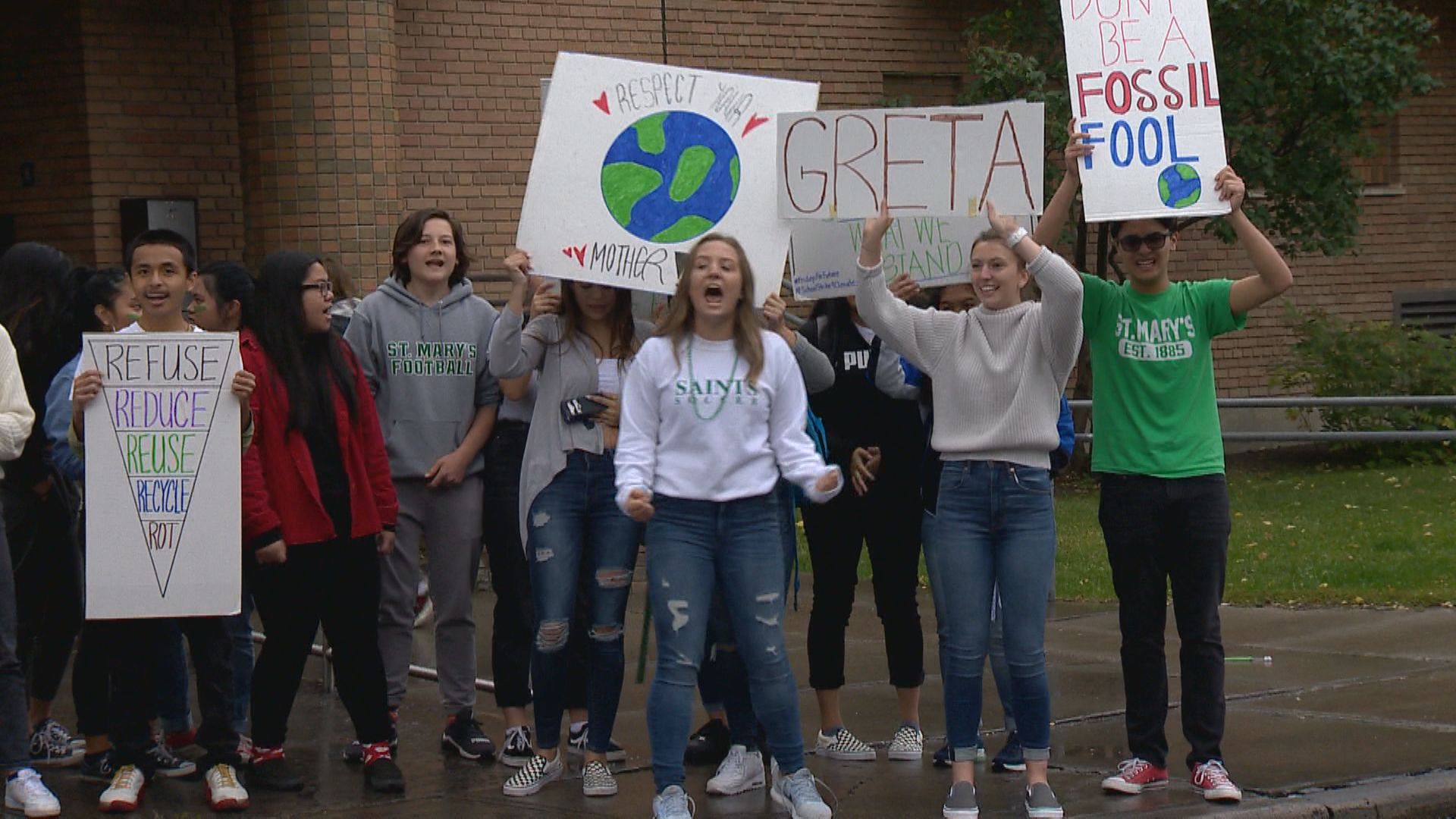 Students also protested outside St. Mary’s High School on Friday, calling on politicians in all levels of government to do more to tackle the quickly changing climate.