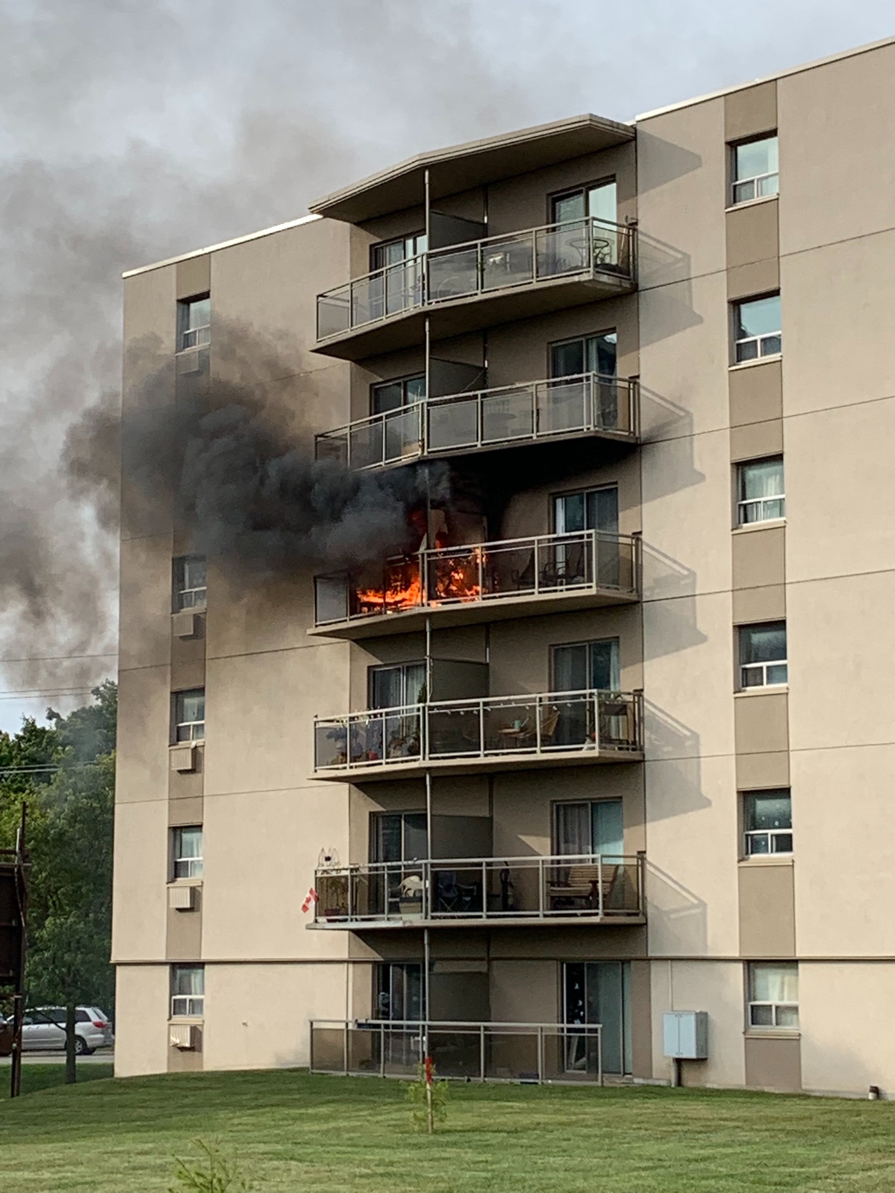 Crews were called to the scene at 492 Springbank Dr., just east of Berkshire Drive, around 4:45 p.m., for a working fire on the balcony of a fourth-floor unit, said Platoon Chief Kirk Loveland.