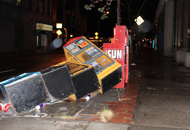 Southern Ontario, Quebec and parts of the Maritimes are being lashed by superstorm Sandy Tuesday morning as the massive weather system churns its way north. The destructive post-tropical storm has already wheeled through the northeastern U.S. – where it has been responsible for flooding, widespread power outages and at least 16 deaths – and is now walloping parts of Canada with strong winds and heavy rain.