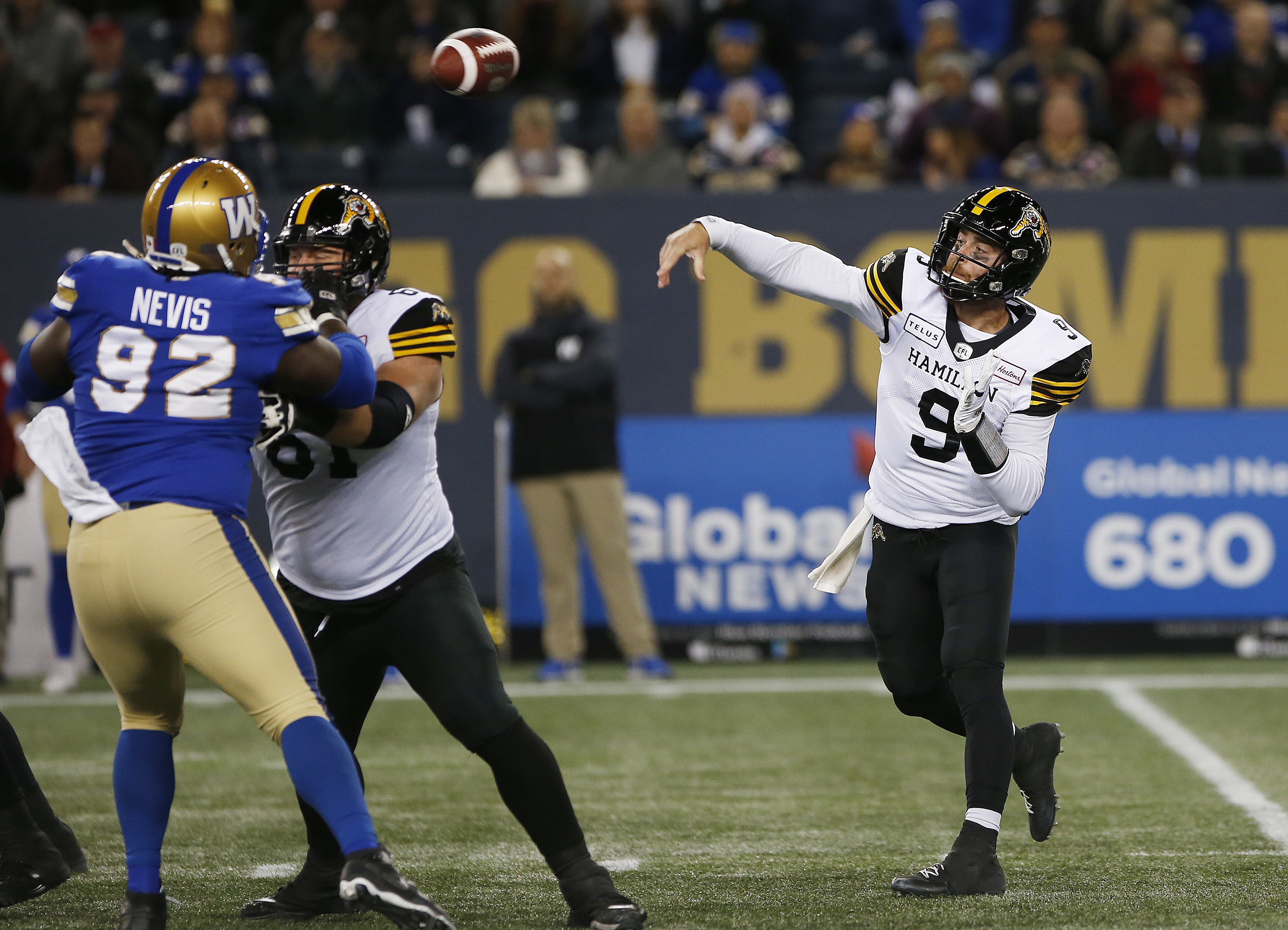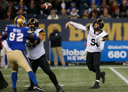 Kicker Lirim Hajrullahu also chipped in a nine-yard field goal in Hamilton’s scoring barrage before Winnipeg’s Justin Medlock kicked a 42-yard field goal just before halftime.