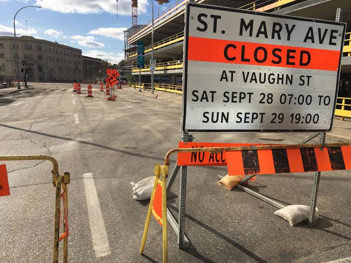 Three streets will either have some lanes closed to traffic or be closed completely through Saturday until Sunday evening due to construction, the City of Winnipeg said in a news release.