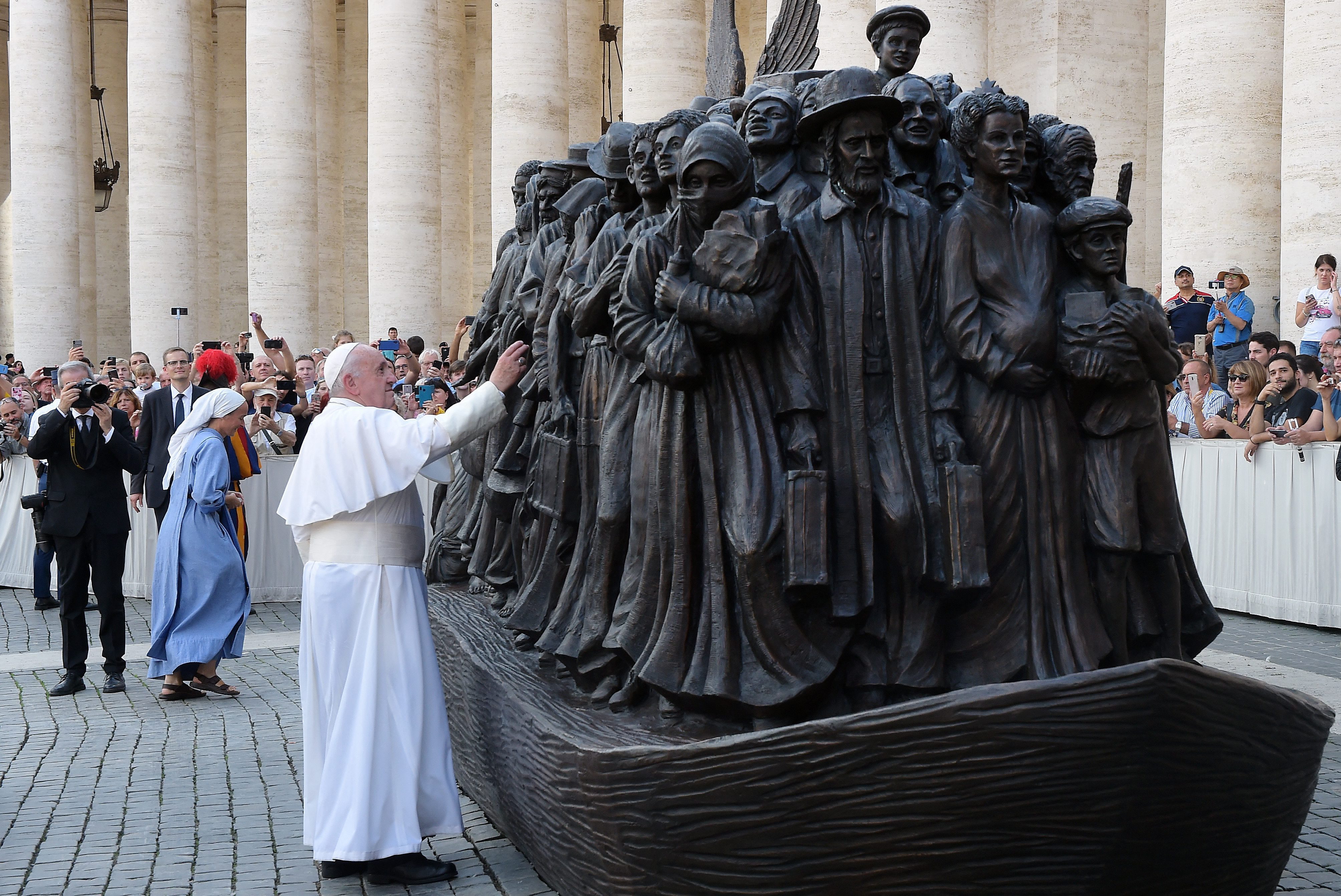 “I wanted this artistic work here in St. Peter’s Square to remind everyone of the evangelical challenge of hospitality,” Francis said.