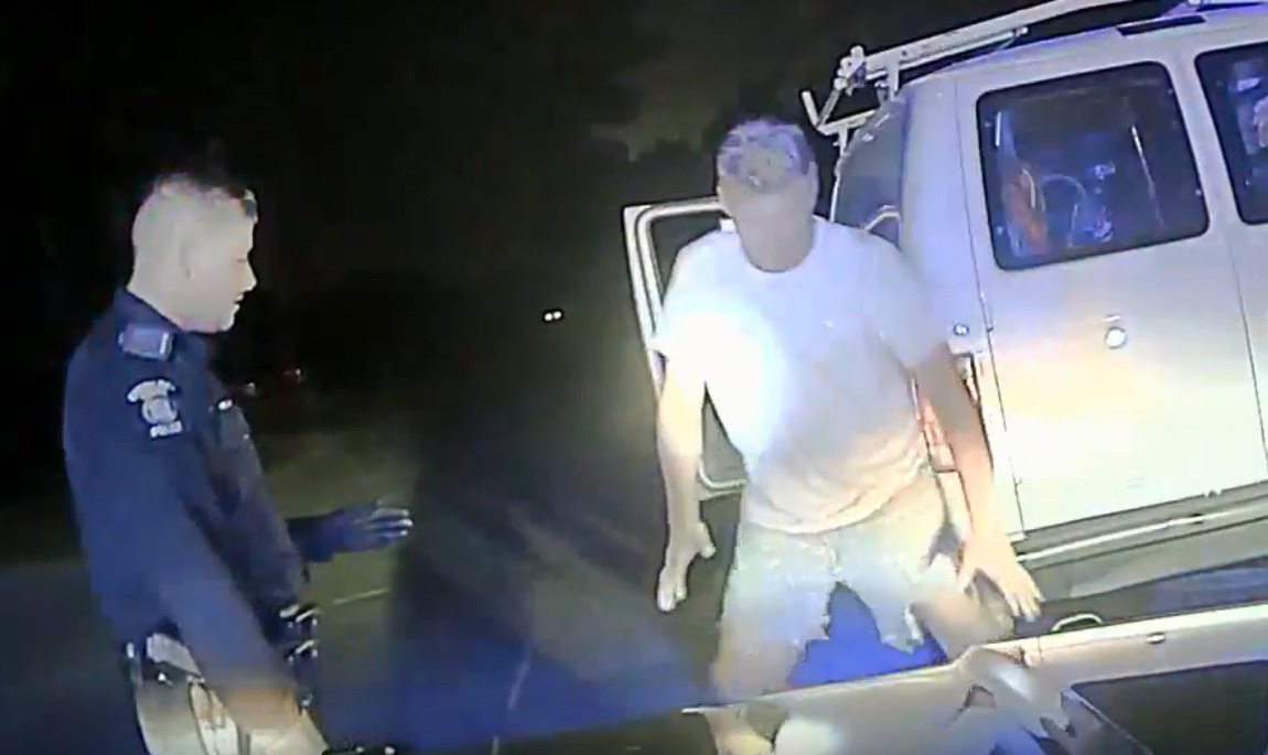 “You think you’re in any condition to do some field sobriety tests for me real quick?” one officer asks.