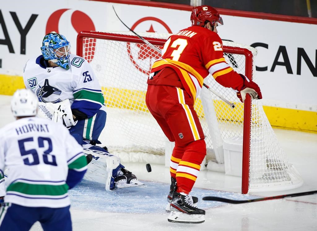Calgary’s top line produced and Flames goaltender David Rittich got to work on proving he’s a bona fide NHL starter in Saturday’s 3-0 win over the Vancouver Canucks.