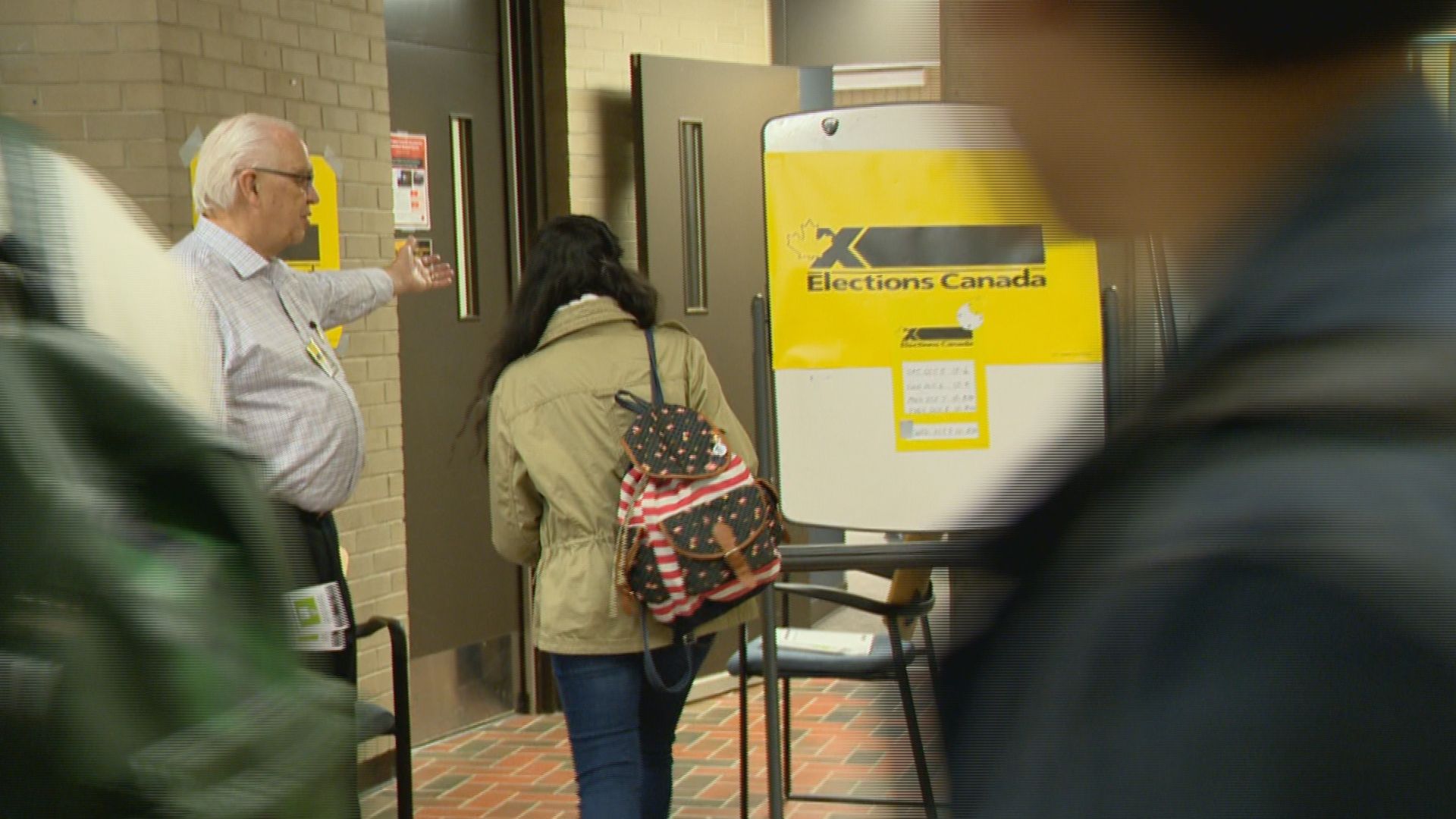 In addition to volunteers working at the polling station, Elections Canada has student volunteers in the campus halls encouraging their peers to vote.