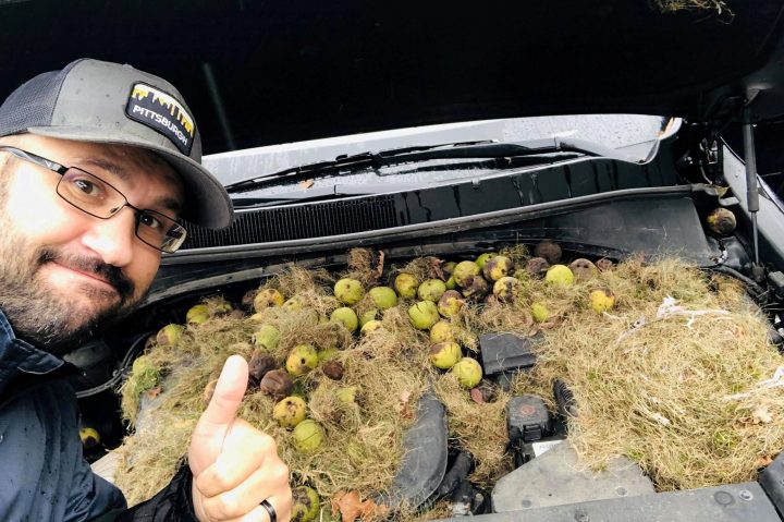 “Rodents and vehicles do not mix,” Chris Persic wrote. He described the incident as “absolutely nuts,” and suggested there were probably enough walnuts under the hood for three winters.