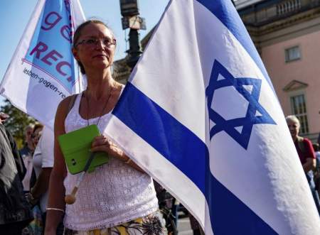 The rally was organized by the civil rights group Unteilbar, or “Indivisible,” under the slogan “We stand united” and ended at the city’s New Synagogue with its famous golden dome topped by a Star of David.