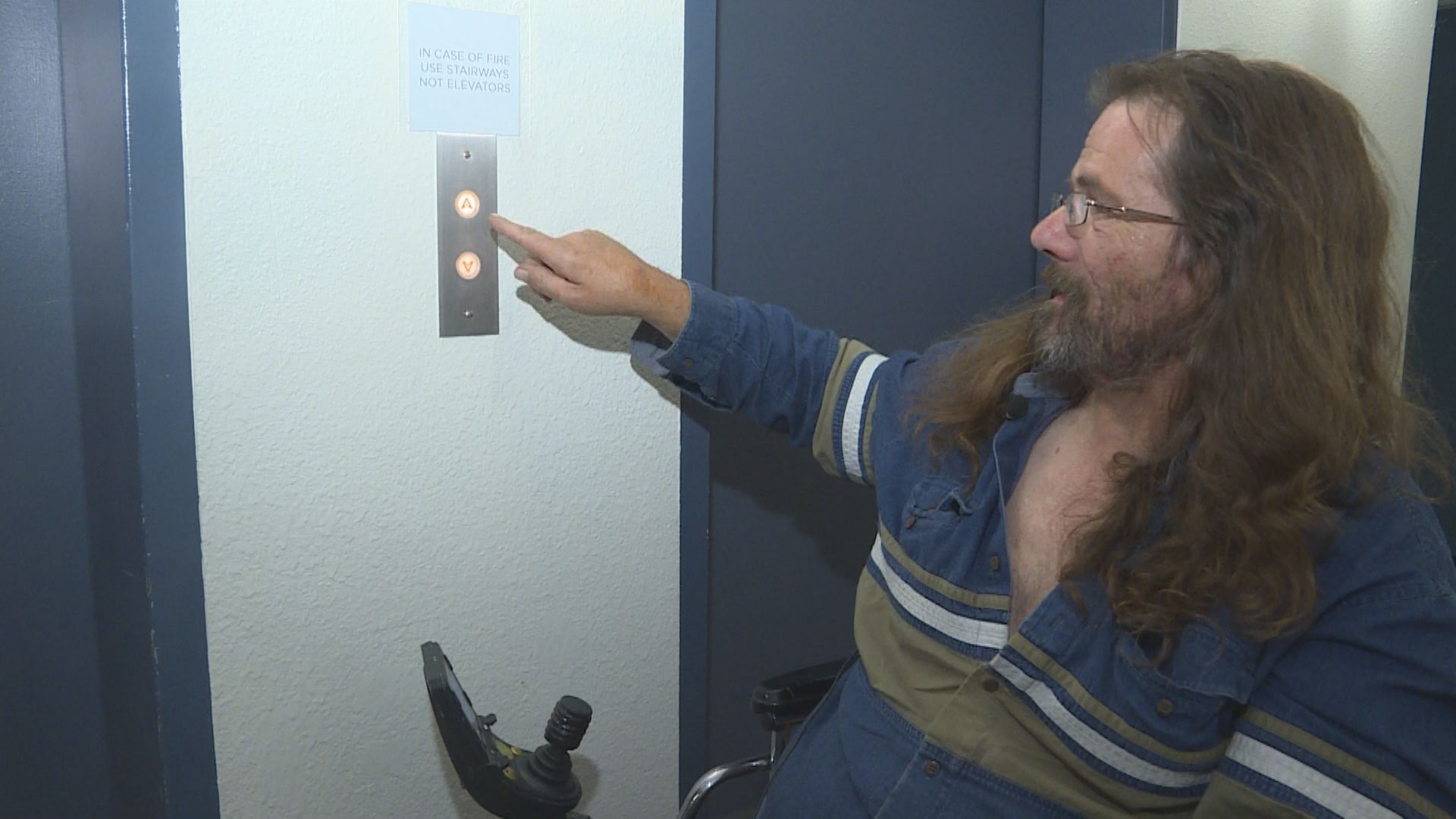 Jeremy Hildenbrand uses a wheelchair and said that there have been problems with the elevators since he moved in three years ago.