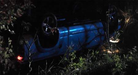 Around 8 p.m., emergency crews were called to the area along Mount Pleasant Road, where they found a pickup truck lying on its roof in the swamp.