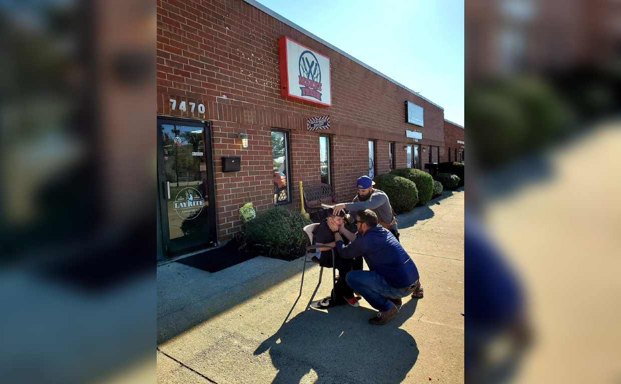 The moment — with Conti trimming Brycen’s hair and dad Joe cradling his face — was caught on camera and shared to the shop’s Facebook page.