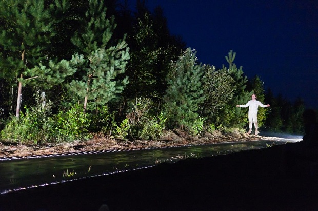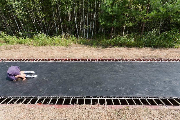 The forests of Russia now feature something completely different: a massive trampoline running the length of a city block.