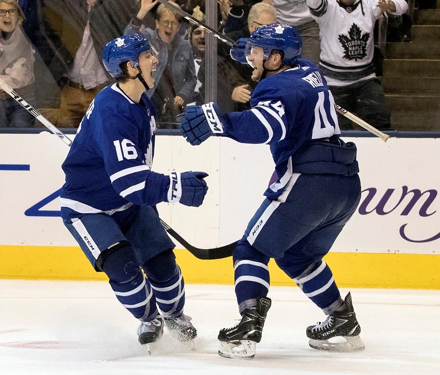With the Maple Leafs’ injured captain looking down from the press box Saturday, the pair finally connected when Toronto needed it most.