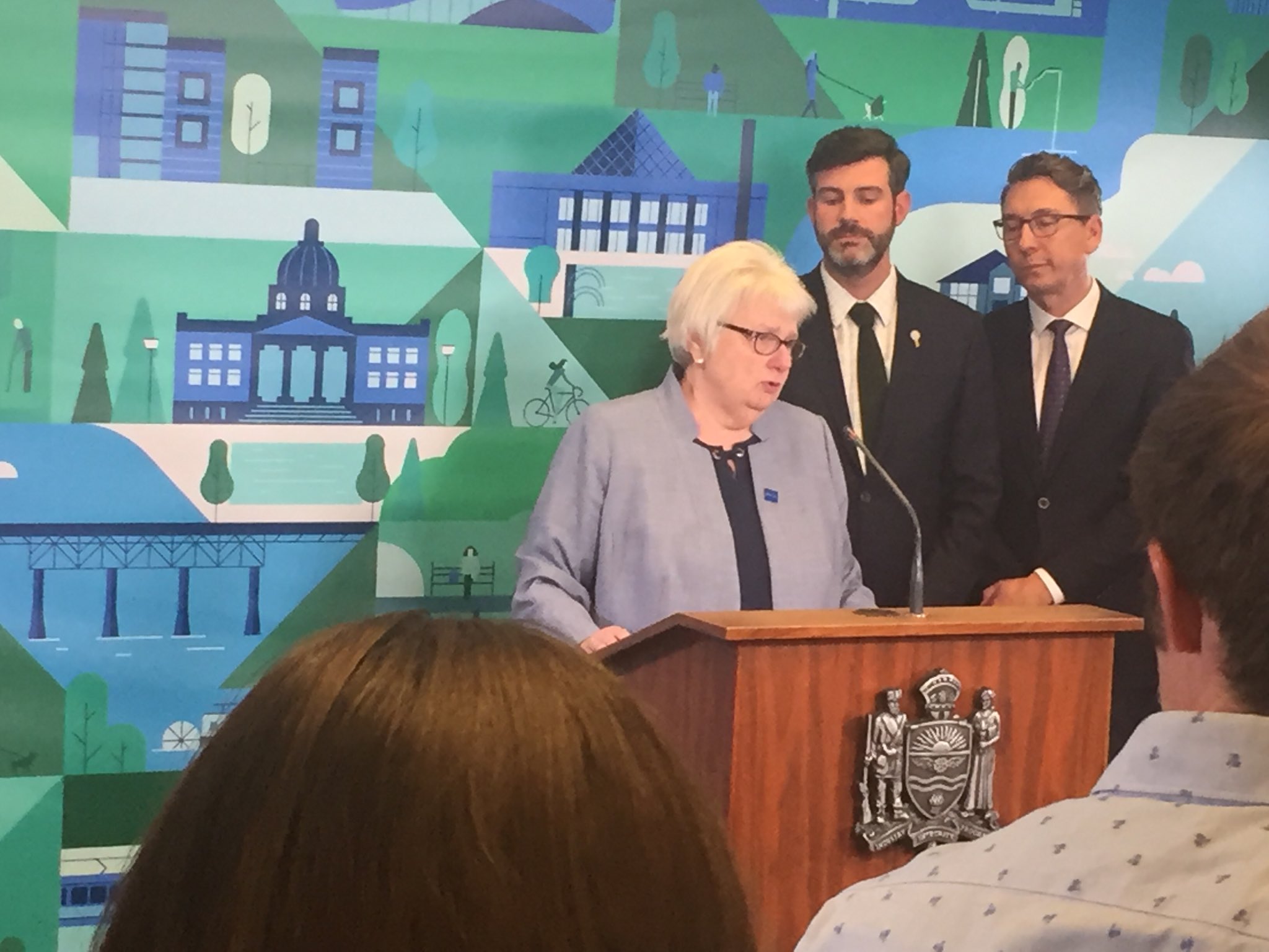 Several councillors and Mayor Don Iveson stood behind Cochrane as she made her announcement.