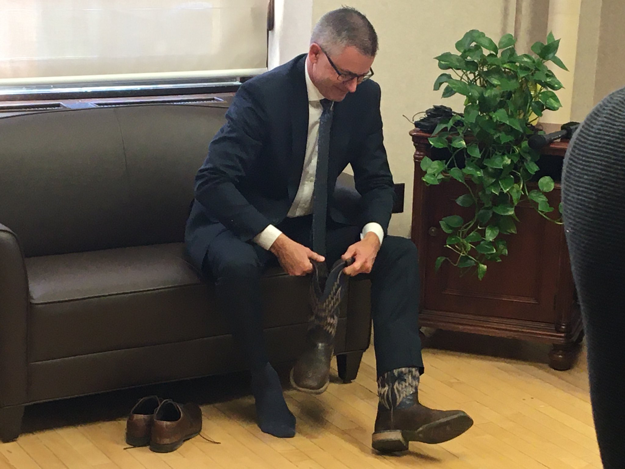 He said the boots, like the budget, reflect the heritage, resilience and self-reliance of Albertans.