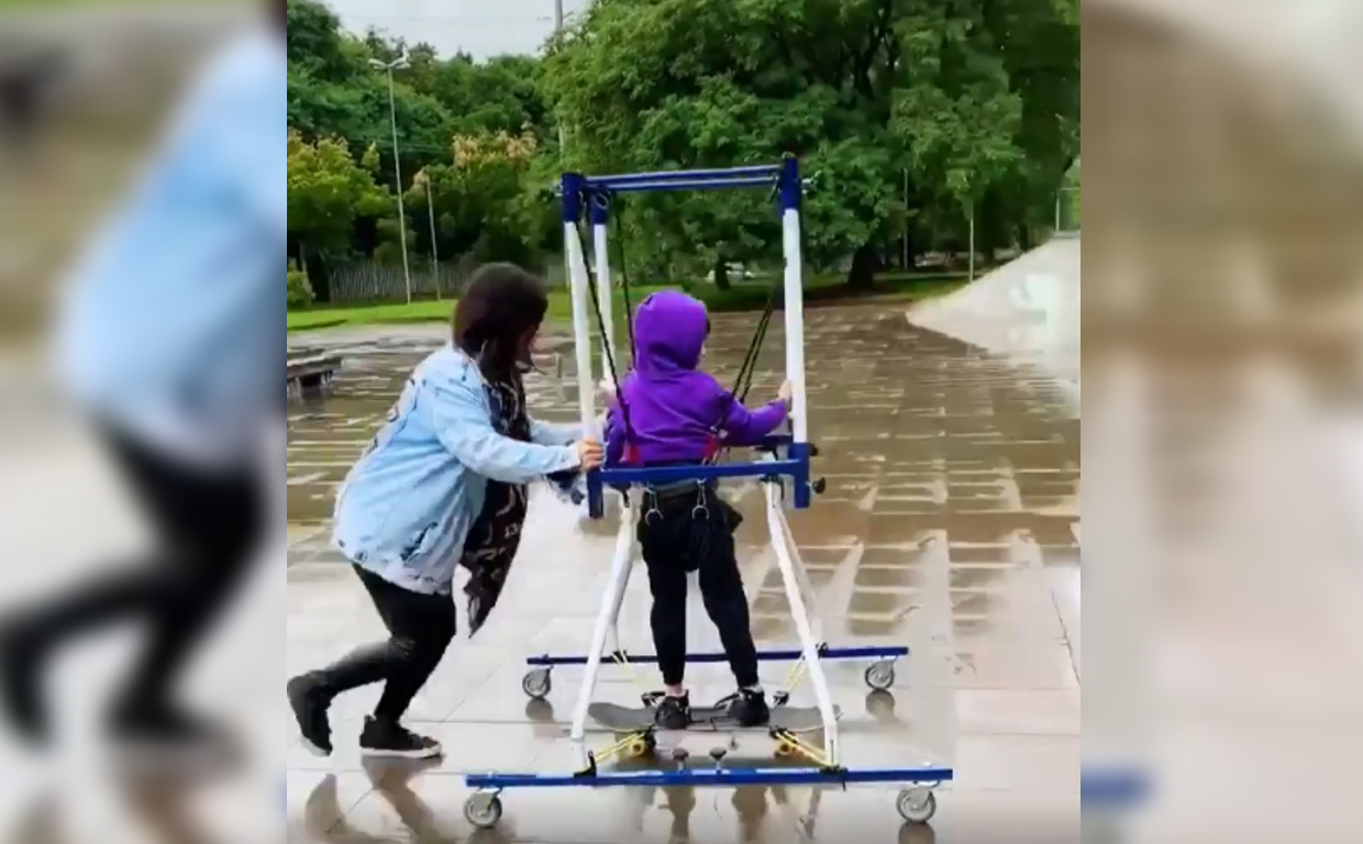 SkateAnima caters to children with various disabilities and adapts its skateboarding rigs for each child based on their needs. The frames allow children with disabilities to put their feet on a skateboard and ride.